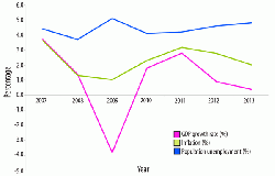 The Austrian economy is closely linked to that of other European countries, especially Germany's. With a GDP of US$399bn and a GDP/capita of US$43,100 in 2012,1 it is one of the richest countries in the world. In contrast with much of Europe, Austria experienced only a brief but sharp recession, as shown in Table 1. Recovery in 2010 and 2011 was intially strong, with GDP growth rates of 1.8% and 2.8% respectively, although this has since levelled out, as shown in Figure 3.