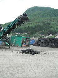 At Kjøpsvik we use the Hotdisk to burn 2t/hr of cut tyres. These combust completely due to residence times of several minutes. The ashes go to the riser duct and then the kiln: the steel cores from the tyres melt into the clinker. The Hotdisk can even burn whole truck tyres and large pieces of wood.